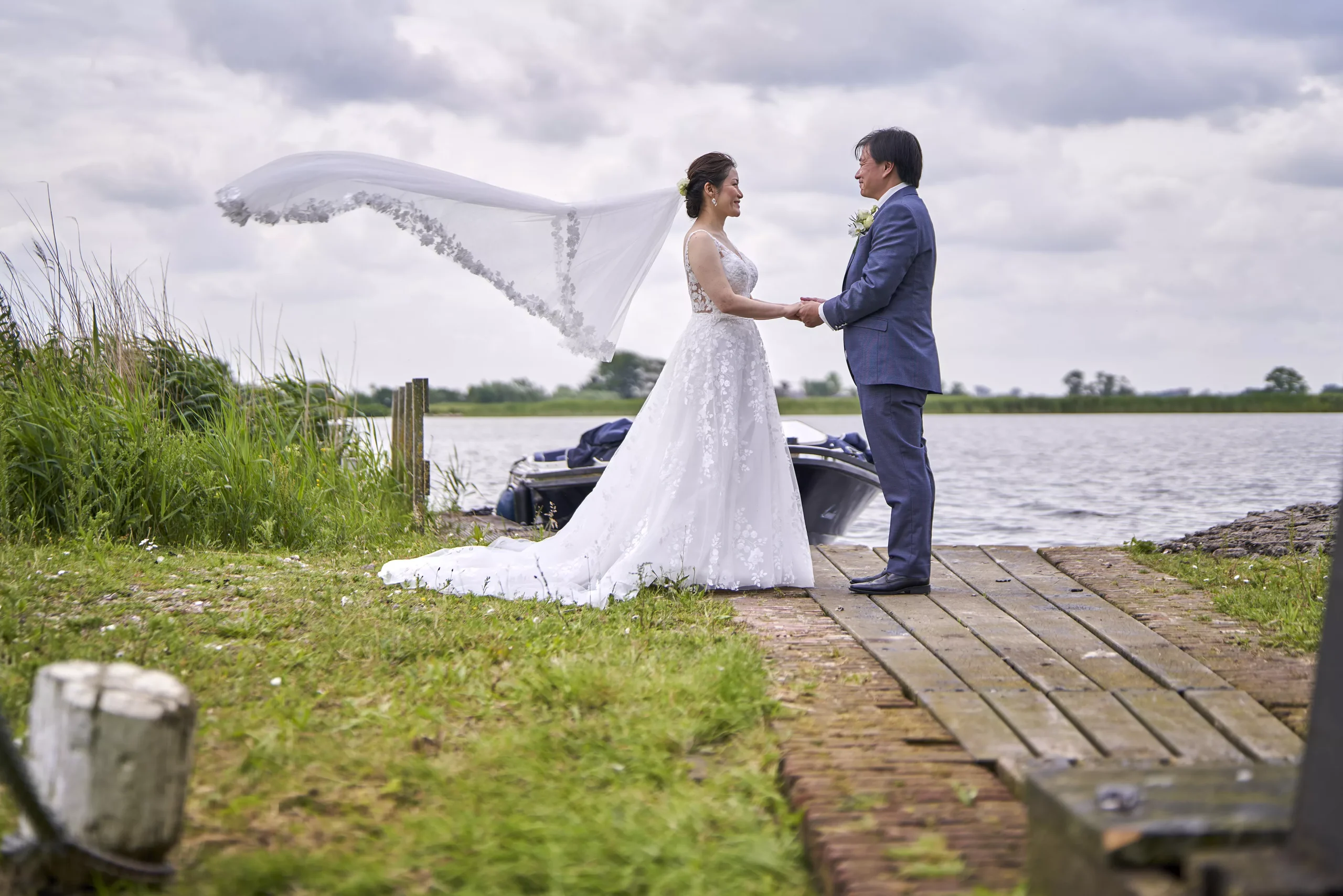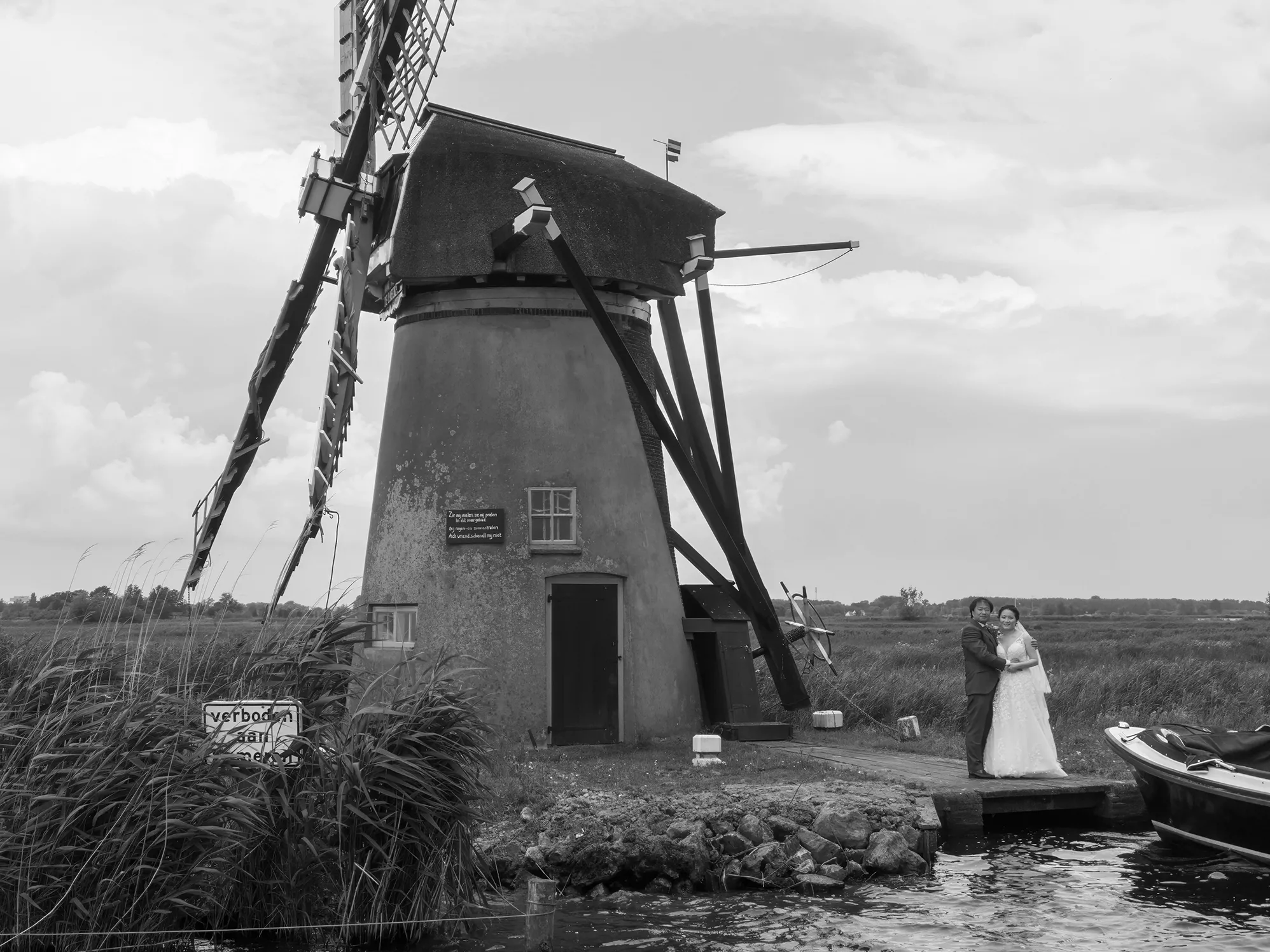 Dit prachtige Chinese bruidspaar trouwde op deze oerhallandse plek aan het water in Leiden. Alles klopte, windmolen, bootje, en we kregen zelfs een prachtige zonsondergang. Wat een mooie dag. Maar ook de Chinese achtergond werd niet vergeten, met onder andere een thee ceremonie en een prachtige 2e Jurk in grotendeel Chinese stijl. Dankzij de inzet van onze drone hebben we ook prachtige luchtfotos kunnen maken. Dit paar koos voor een modern album met acrylglas cover, en heeft uiteraard ook alle mooie foto's digitaal ontvangen. Hier een kleine selectie foto's van hun prachtige dag.